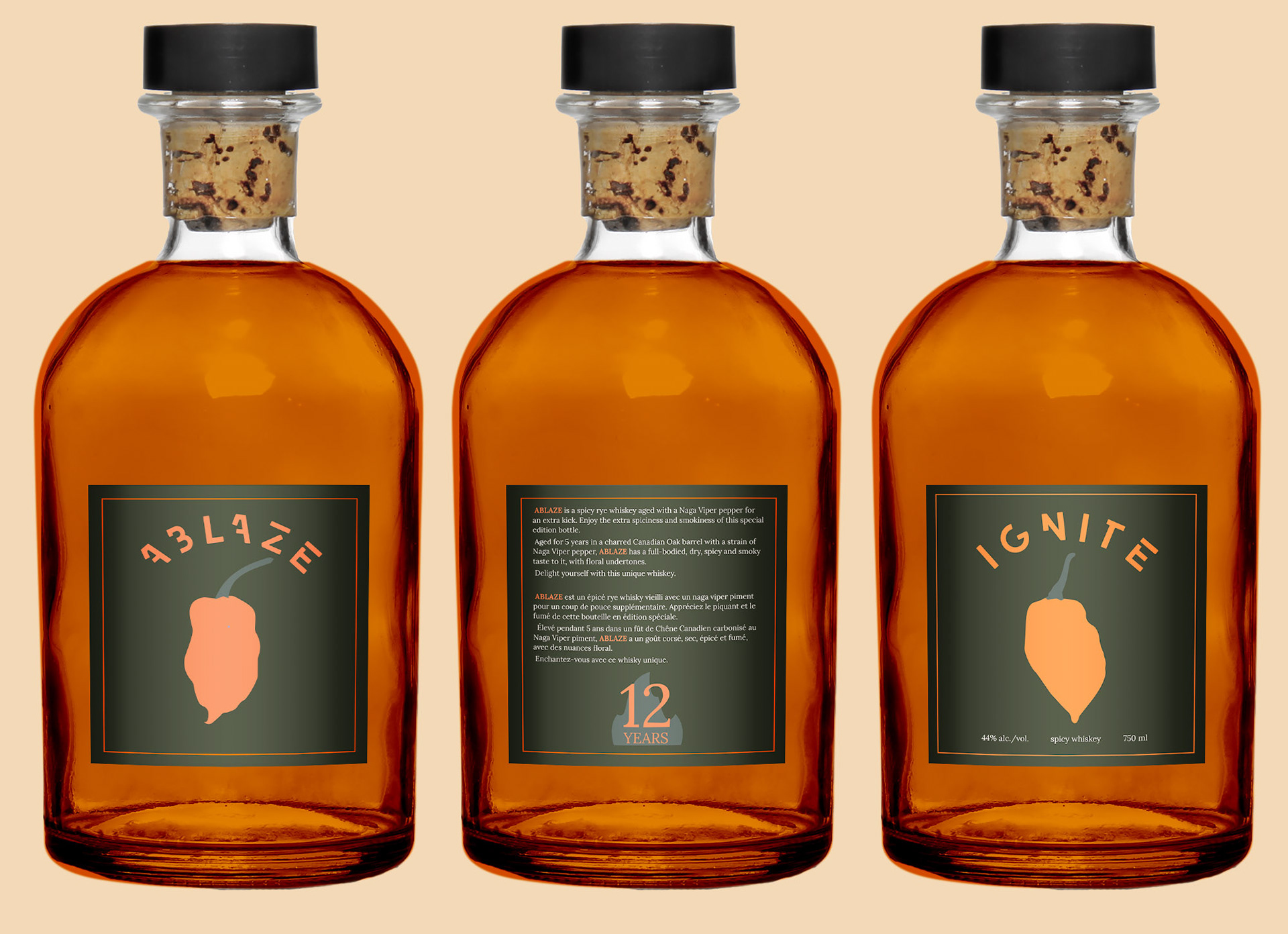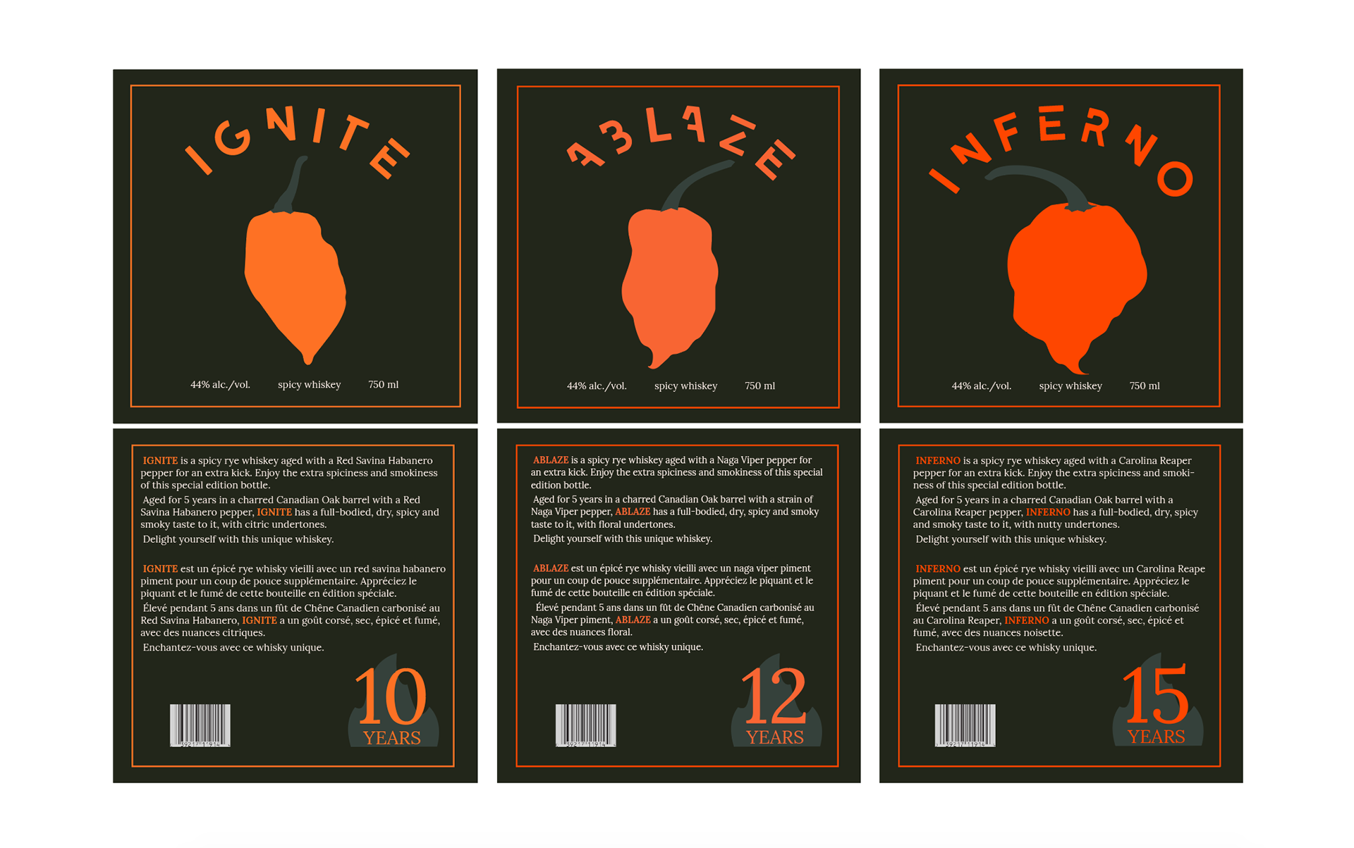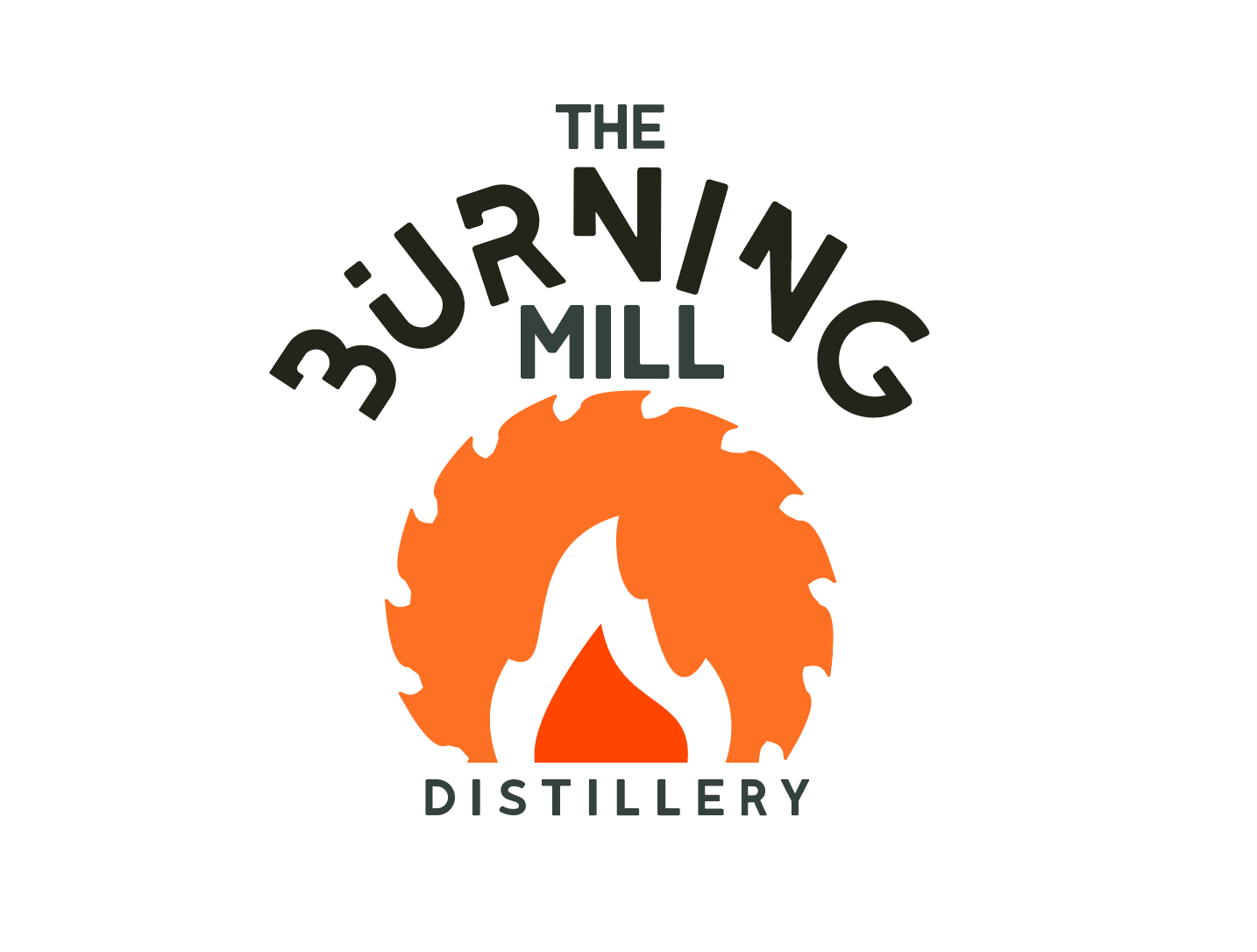 The Burning Mill Distillery is a rye whiskey distillery based in Shawnigan Lake, Vancouver Island. The distillery is located near a mill that burned down in the 1950s on the north side of the lake. The logo is made of two main elements, the saw, which represents the mill, and the fire inside the saw which represents what happened at the wood mill in Shawnigan Lake. The name of the distillery is also inspired by the history of its environment, the colours – dark greens, bright oranges – reflect the contrast of the forest and the fire that sealed the mill’s fate.
